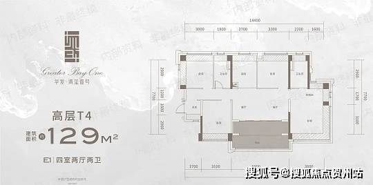 129㎡四房两厅两卫:南向采光,主卧套房设计,折后单价约 4.0-5.5 万 /㎡,总价约 516-710 万