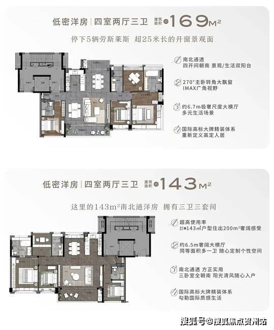 143㎡四房两厅三卫:一梯两户,南北通透,三套房设计,折后单价约 5.0-7.0 万 /㎡,总价约 715-1000 万