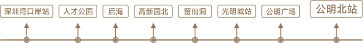 项目距13号线二期(北延)公明北站直线距离约200米,4站达公明广场,可换乘6号线通达宝安/光明/龙华/罗湖/福田。
