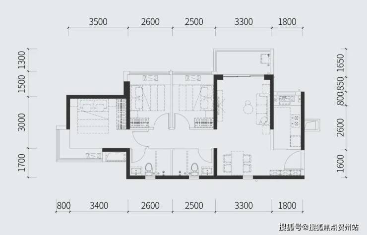 (2)97㎡三房两卫:折后总价约289万(单价2.97万/㎡);