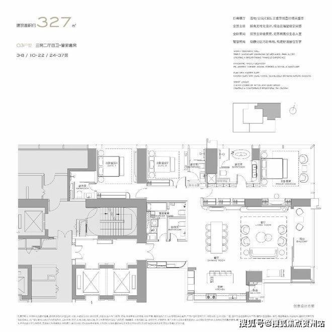联泰超总湾主推大平层公寓及独栋别墅产品,户型面积从300平方米至1000平方米不等,首批推出303㎡、326㎡、404㎡及572㎡四种户型,预计总价3000万起。公寓产品通燃气且配备超大阳台,居住舒适度极高。