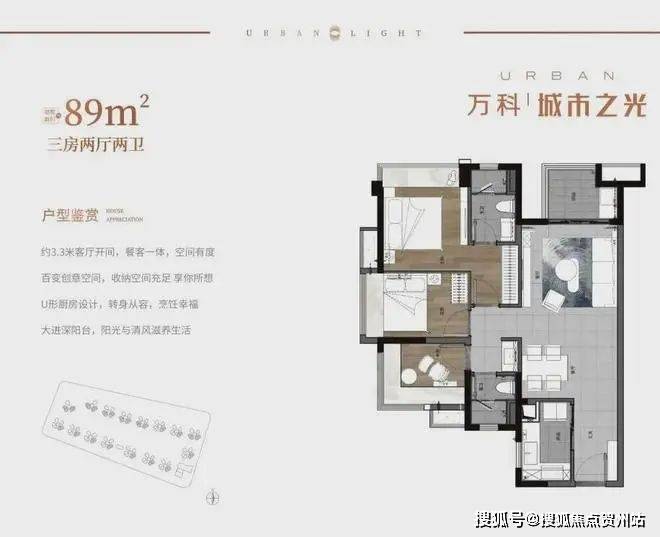 中山万科城市之光,当前在售户型主要为79-109㎡的三至四房,带装修交付,价格约10200-10900元/㎡。
