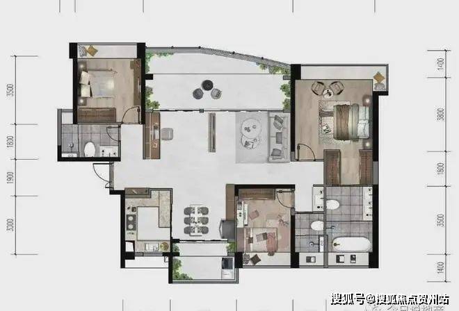 约135㎡尊享约7.4米转角阳台三面巨幕房