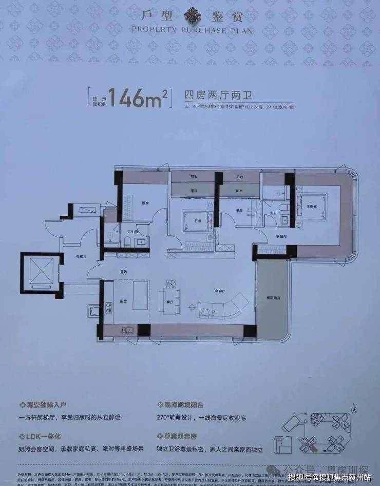 【梯 户 比】4梯5户(低区)/4梯4户(高区)、建面约125㎡以上专梯专户