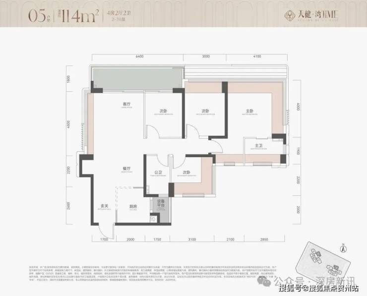 - 113㎡四房:南北通透设计,动静分区明确;主卧带独立卫浴+飘窗,次卧与公卫采用“类套房”布局(次卧可独立使用公卫),空间实用性强。