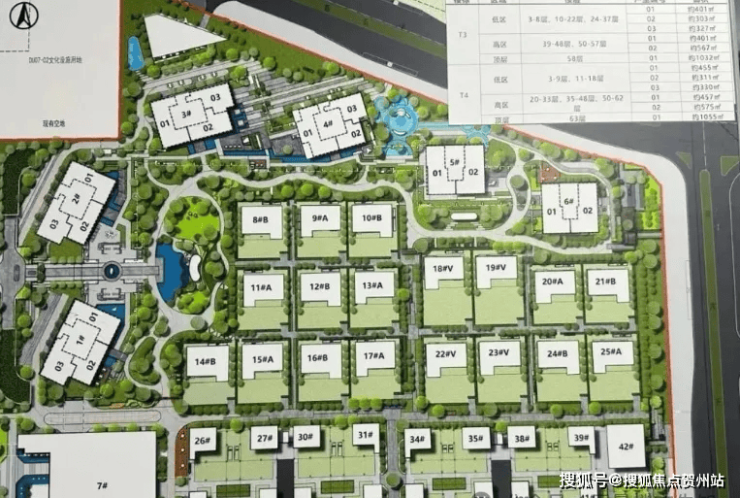 业态组成:4栋51-63层公寓(层高3.6-3.9米,含388米地标主塔T1)、2栋高层办公楼、19套独栋董事公馆、16套合院别墅及约1.4万㎡高端定制商业