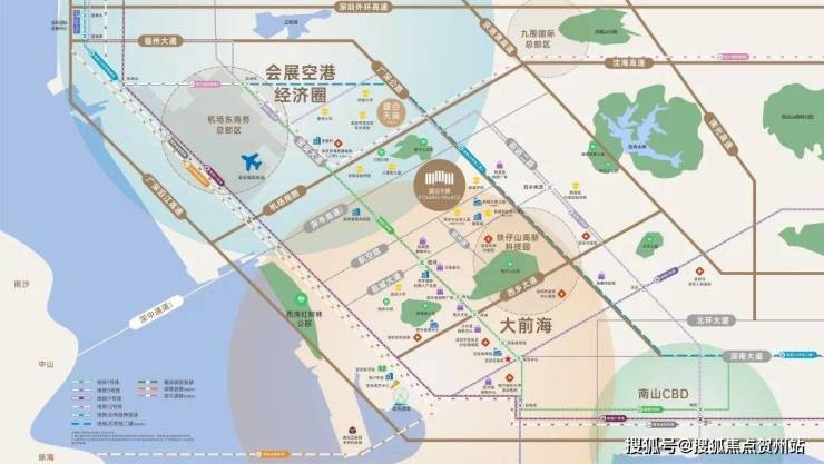 【干道线路】道路呈现“四纵两横”的布局,“四纵”指沿江高速、宝安大道、107国道,京港澳高速;“两横”指机场南路、西乡大道;10分钟内可进入沿江高速快速到底前海地区;