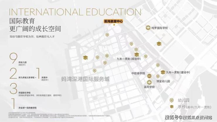 公立学校有前湾南二外九年制学校。国际学校有哈罗公学、荟同国际学校,孩子上学不用愁。
