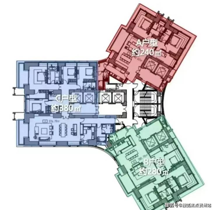 深业世纪山谷定位高端的纯大平层,8梯3户,233㎡/280㎡配备两个独立电梯,386㎡双梯设计,实在任性!