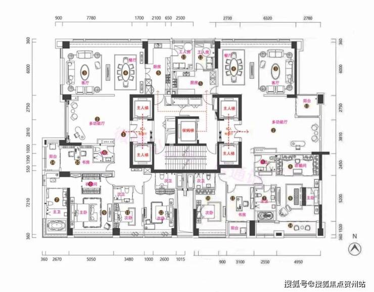 相较之下,T1栋呈现更为奢华的配置,每层仅一户,设有533-540㎡的五房五厅六卫户型和533-538㎡的同类户型,附带私人泳池。总价介于5491-7246万之间。