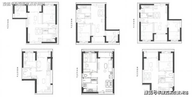 目前在售的商务公寓户型包括44㎡的1房、53-56㎡的1房以及63-65㎡和71㎡的2房2厅1卫。