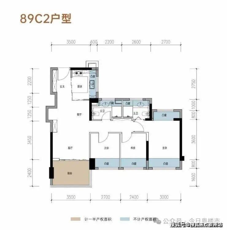 相比89E户型,飘窗设计相对较少,整体赠送空间与市场主流产品接近,实用率约95%。户型规划方正,动静分区合理,采用四开间朝南设计,采光和居住舒适度较好,算是中规中矩的产品。