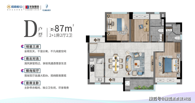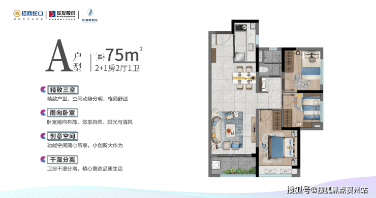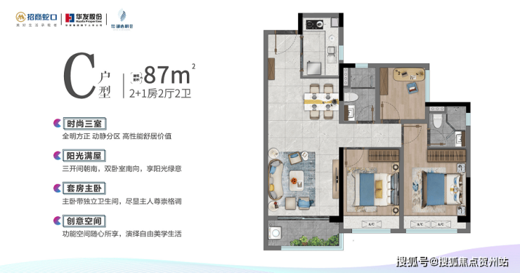 招商华发湖心明荟洞察当下的人居潮流,在创新中迭代产品,精细考量空间尺度,建面约75-99㎡精装三至四房,演绎现代人居生活美学,筑就美好品质生活家。