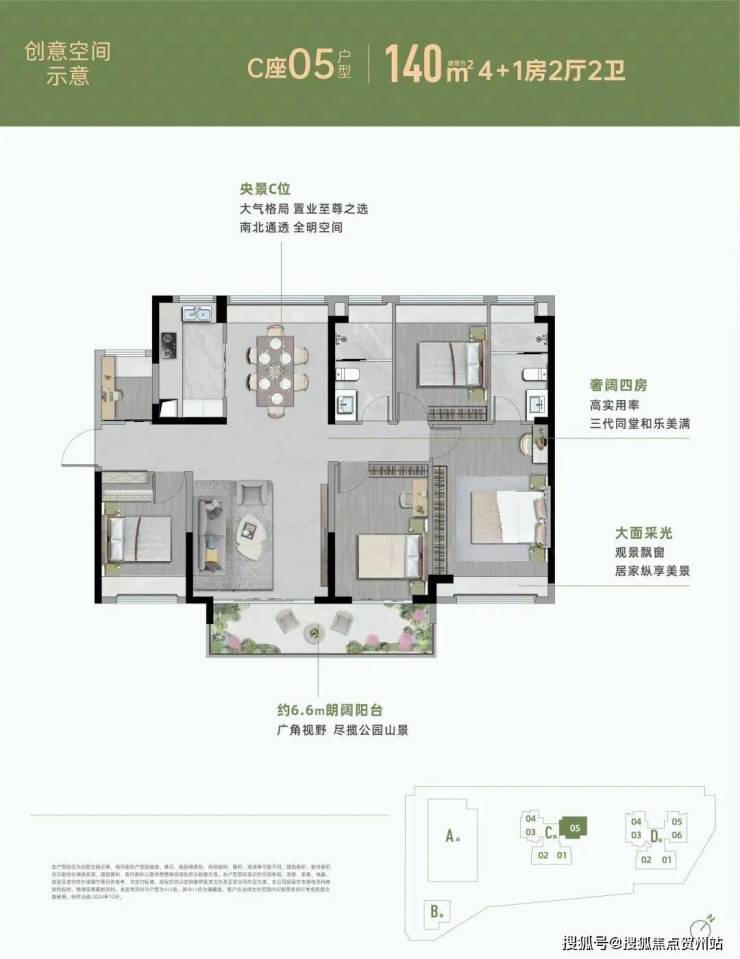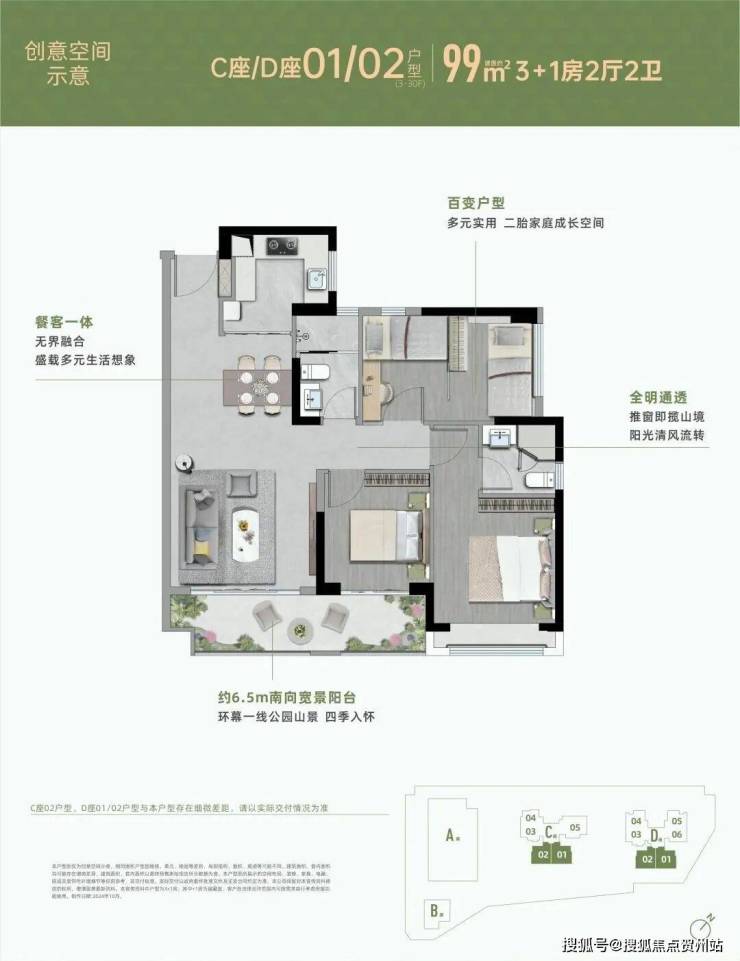 约6.5m南向宽景阳台,环幕视野 四季入怀