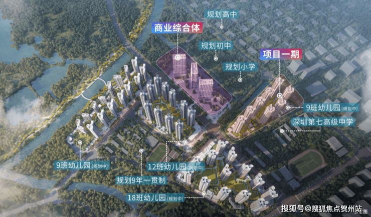 项目将分五期开发,共涉及6个地块,包括:4块二类居住用地,1块商业用地,1块教育用地。建成后,将是深圳西部又一集居住、公共配套、商务配套、商业服务等功能于一体的商住综合体。