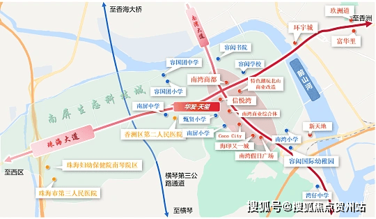 交通:位于南湾核心枢纽,金琴快线、南湾大道串联高新区、十字门与横琴。周边有珠海大桥、洪鹤大桥等多条跨海通道,广珠西线高速南屏出口 1 小时可达大湾区核心城市。周边规划有珠机城轨、广珠城轨。