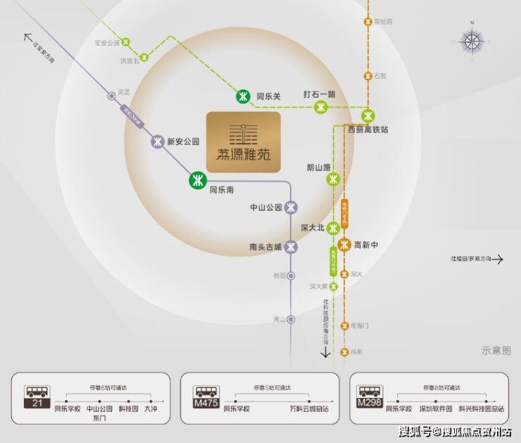 15号线(建设中)同乐关站(直线约1.5km),2站到西丽高铁站,贯穿前海、后海、南山、宝安等重要片区,环经济发展核心区域。