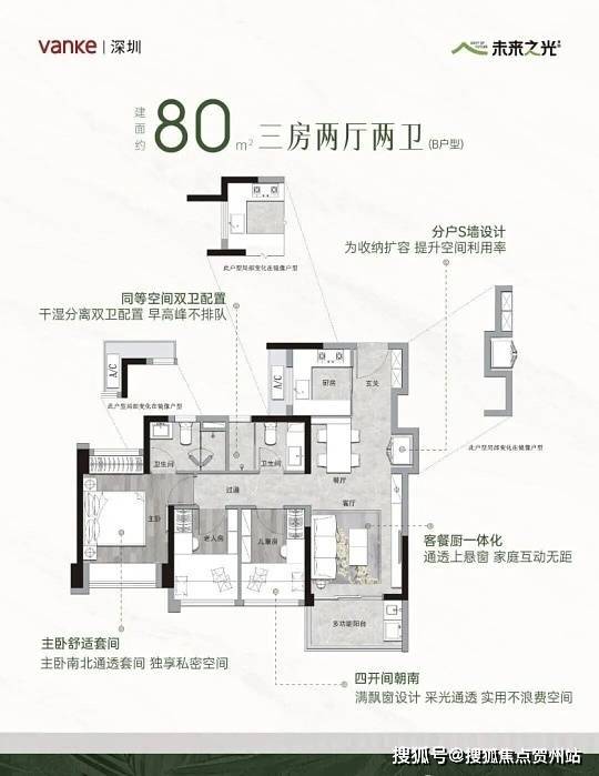 竖厅南北通透 / 横厅设计,主卧独立卫浴,动静分区