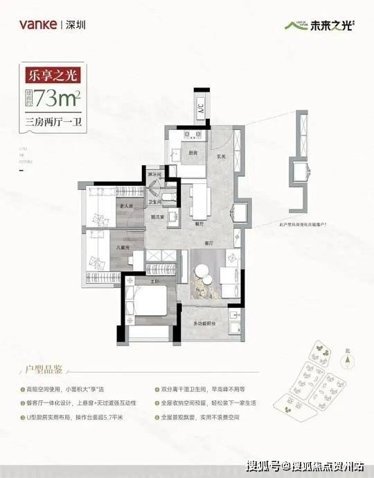 实得率高:平均约 81%,73㎡可做三房,空间利用率超同区域竞品