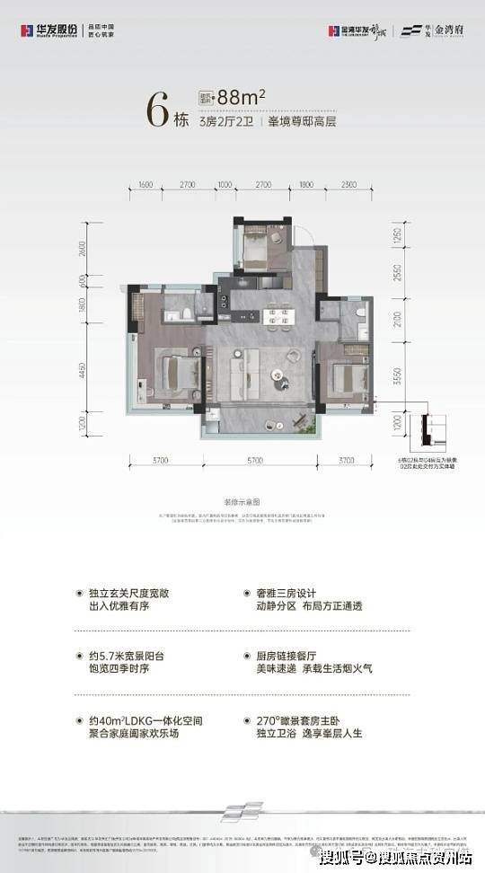 超高得房率:官方宣称 "零公摊",实际得房率达 100-110%(部分户型),88㎡可做四房