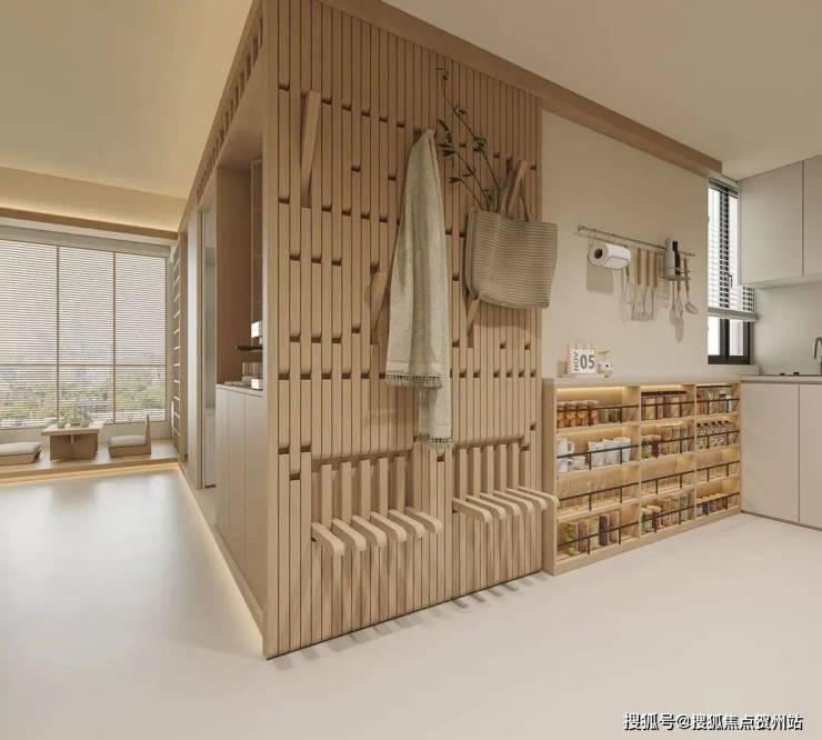 巧妙设计的"隐形收纳"系统,通过沿墙定制柜体将物品妥善收纳,归家时不见杂乱,只见整洁舒适的生活空间。