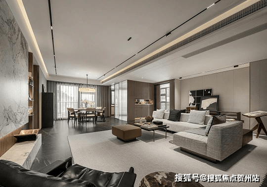 · 全屋高配日立中央空调、无主灯磁吸轨道系统,客厅定制岩板背景墙,卧室铺设多层实木板,质感拉满。