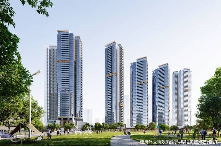 立面采用高端蜂窝铝板+天然石材+类玻璃幕墙,精致的金属勾边,毫米级幕墙工艺锻造,以“公建化立面”诠释高阶人居美学。