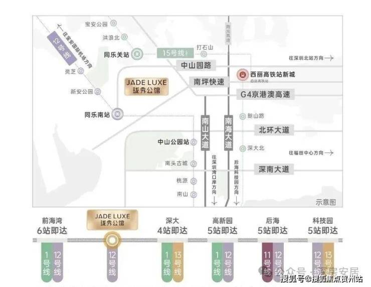 • 15号线同乐关站(在建中,预计2028年12月开通),串联宝中/前海/深圳湾/西丽,也被称为深圳“一环线”,本项目为环线上的重要一环;