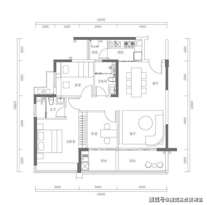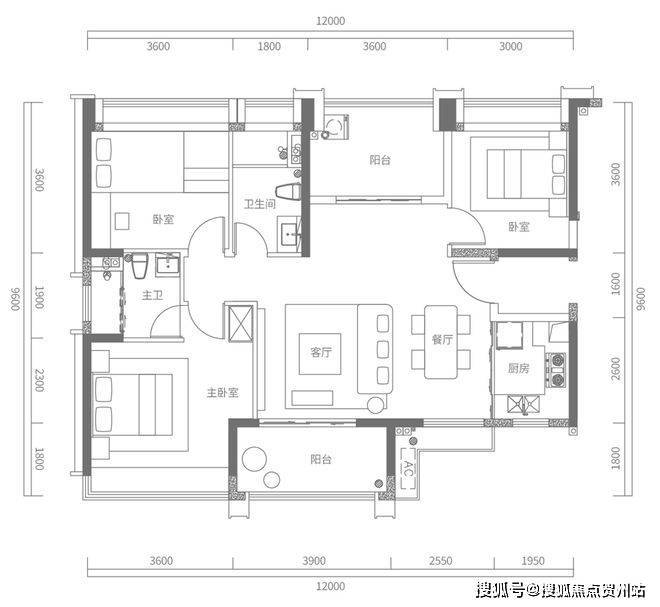 C户型建面约120㎡,3+1房2厅2卫