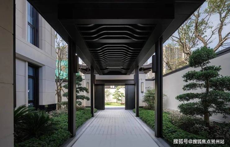 在华发院子外郭,由高耸的大门与两侧围墙构筑成室外广场。未来业主归家或迎客,尽可以停车或驻足在这里,体会到归家的尊崇和对客人的盛情。业主开车回家,从两侧道路拐个弯,就能进入小区地库,而不必先驶入小区,取消了行人与车辆之间的交叉动线,尽最大限度实现人车分流。