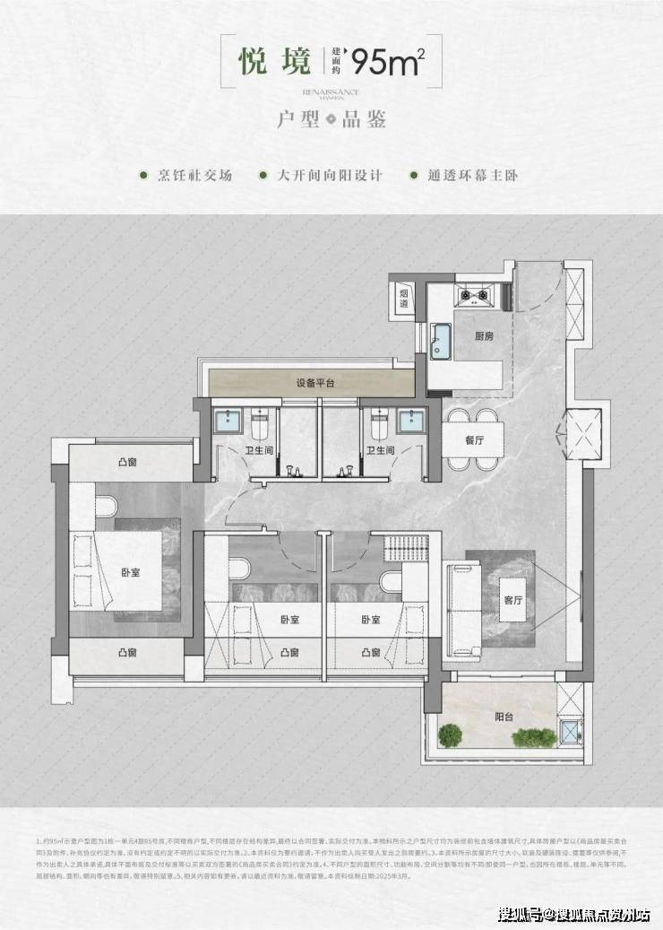 95㎡三房两卫:布局合理,采光良好,实用性强。