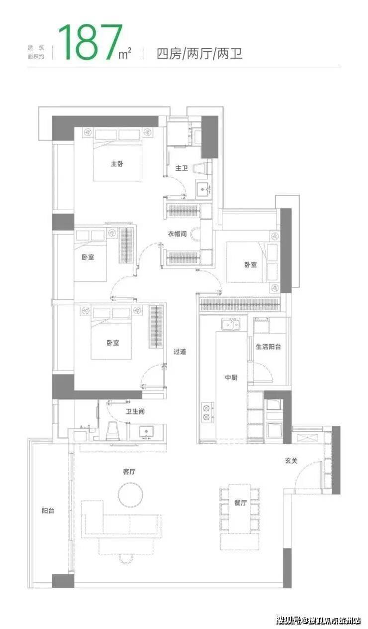 建面约187m² 四房两厅两卫