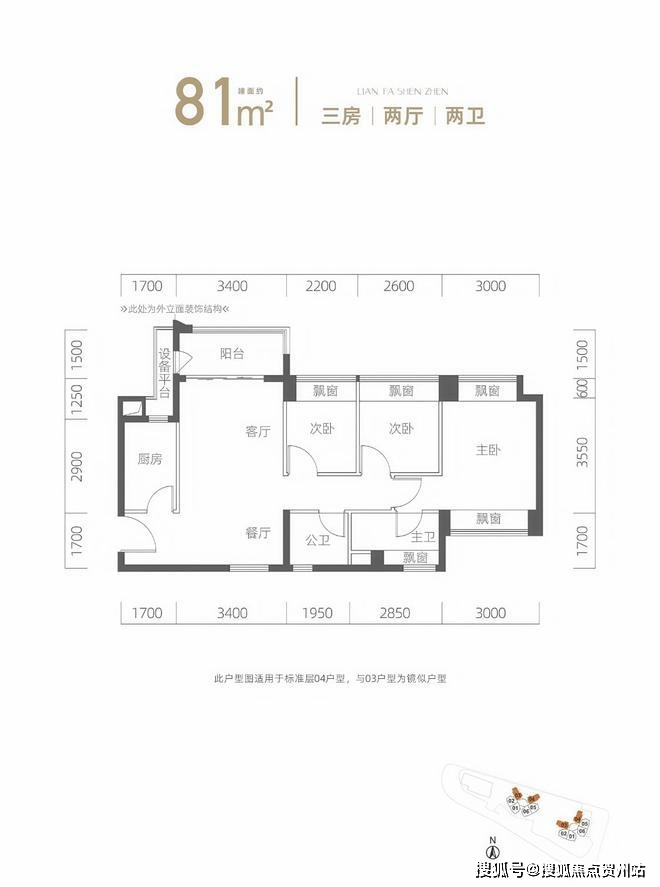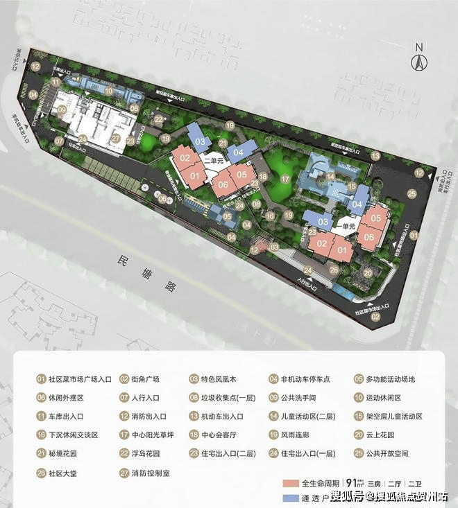 核心亮点:高使用率设计(优于周边竞品),L 型厨房动线合理,客餐厅一体化南北通透,主卧带独立卫浴,满足三口之家需求19。