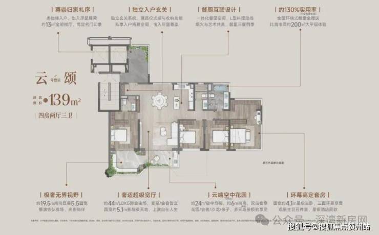 ·建面约139㎡「云颂」 四代浮岛大平层: