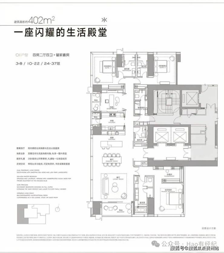 ✨ 404㎡(4500-6000万):四房双龙抱珠,南看海、北看湖、西看超总城景,三个阳台+书房,客厅、厨房、书房各有景观,极致享受没话说