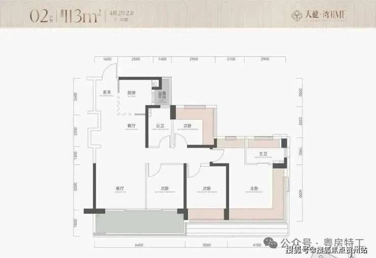 113㎡4房2卫,竖厅户型,朝南看海,6.4米宽大阳台;