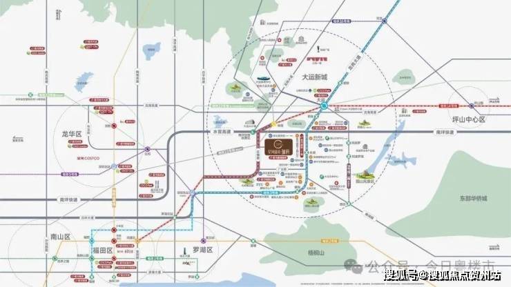 约5公里范围:尽揽百万㎡商圈,星河COCOPark(龙岗山姆会员店)、大运天地、恒大城市之光、天光城等知名商业体环伺,畅享都市繁华便利。