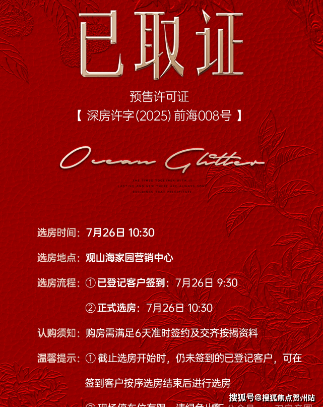 项目于7月26日9:30签到,10:30线下选房。