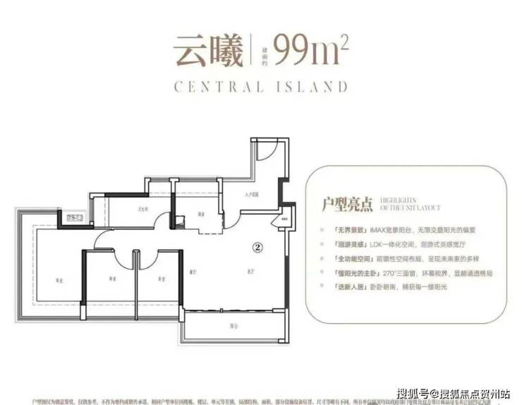 99㎡云曦户型:IMAX观景阳台,主卧270°三面窗