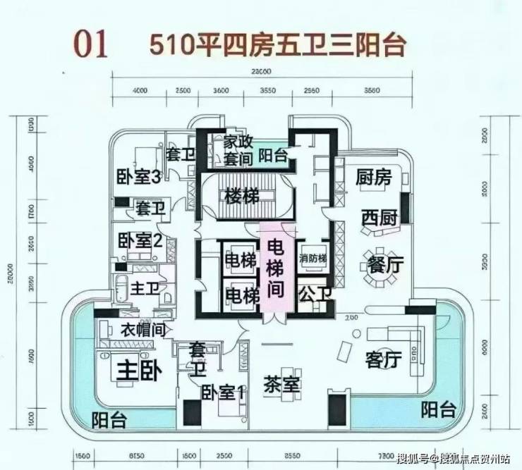 分布在D栋和E栋,3梯2户,层高3.5米,专梯入户。户型为弓形结构,主朝向西南看歌剧院,部分可看东南。预计总价6000万+,景观楼层价差较大。