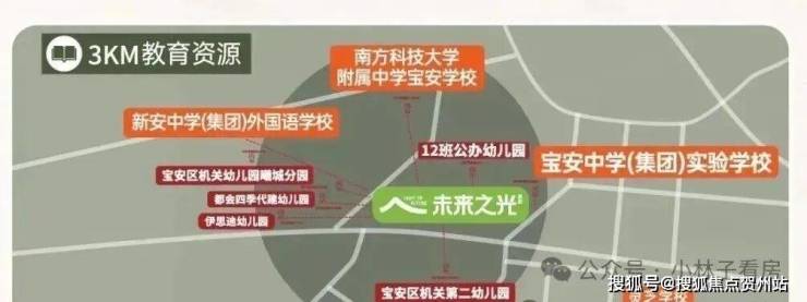项目内自建幼儿园,3km内南方科技大学附属中学宝安学校(在建中)、宝安中学(集团)实验学校、新安中学(集团)外国语学校、曦城协同学校等学府汇聚