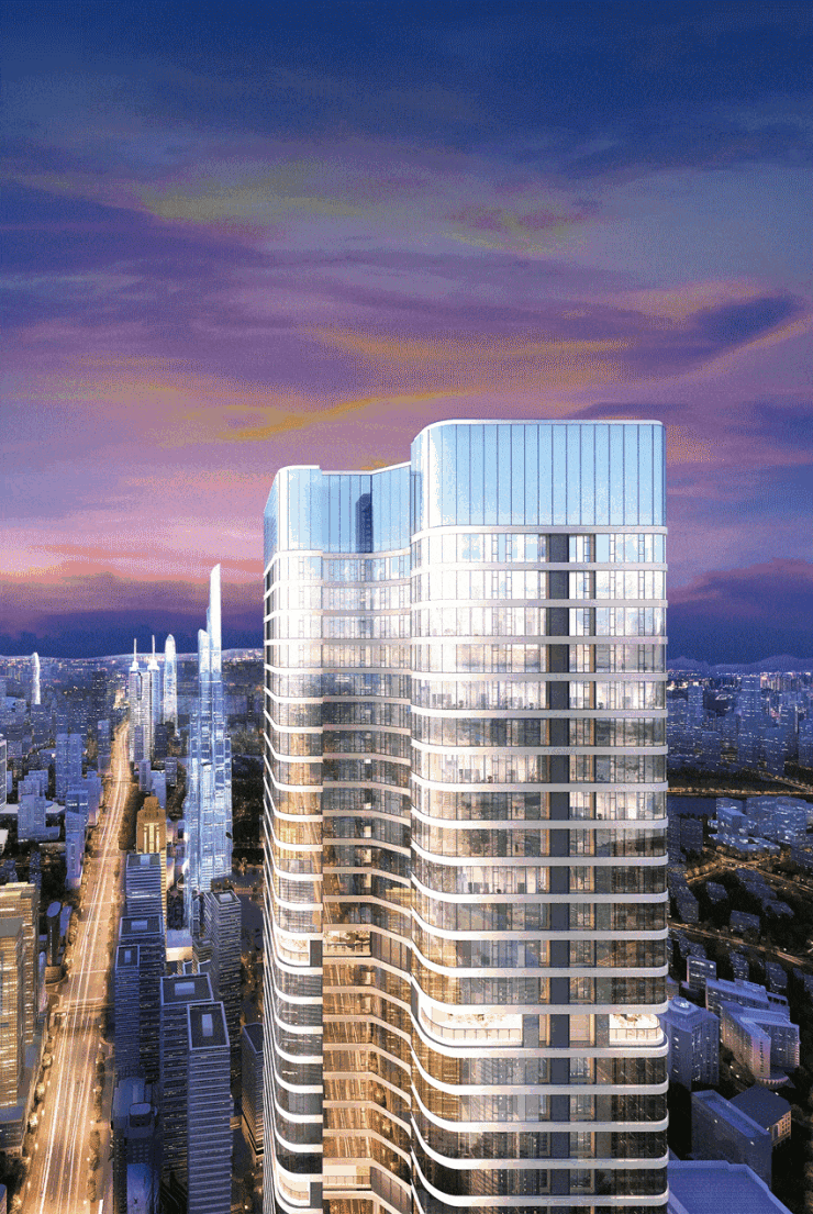 项目位于深圳深南大道与文锦路的交汇处,建面约8.12万㎡,地下3层,地上44层,融合了星级俱乐部、塔尖藏品、商业、休闲、生态等业态,提供建面约60-108㎡法拉利总裁空间和建面约227-249㎡高定大平层,共324席。