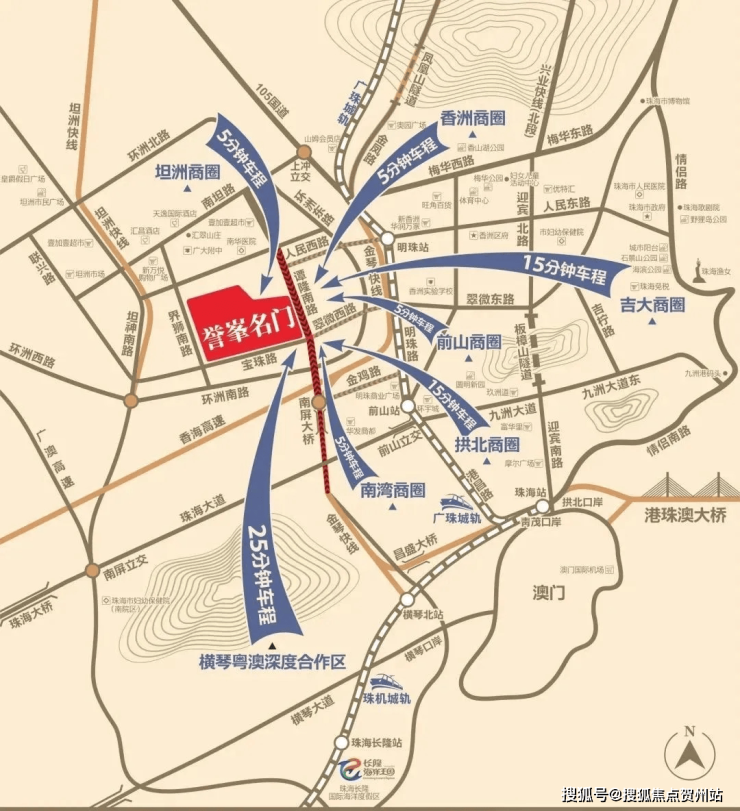 誉峯名门,雄踞 珠海坦洲 城央交汇处,距离珠海仅300米,坐拥香洲生活圈,随着枢纽工程造贝立交的不断推进,未来将连通金琴快线、港珠澳大桥、深中通道,纵横湾区各大城市,香海路将成为珠海主城连通西部中心城区的交通大动脉,誉峯格局,遇鉴未来。