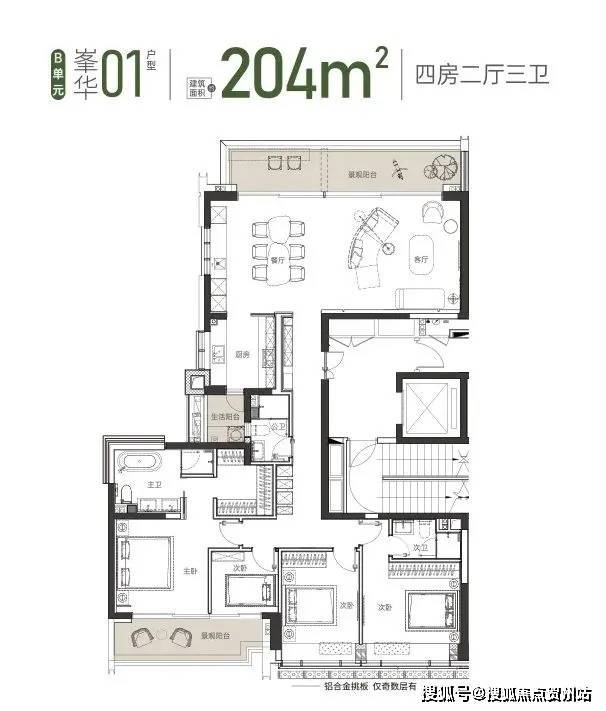 建面约 204 ㎡ 01户型 4房2厅2卫