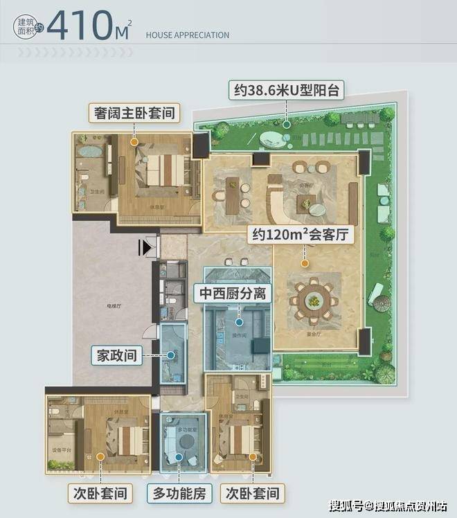 建面约410㎡摩天大平层户型: