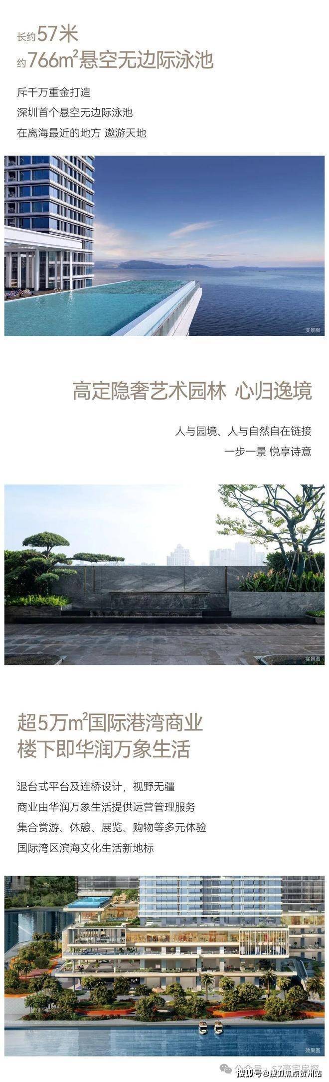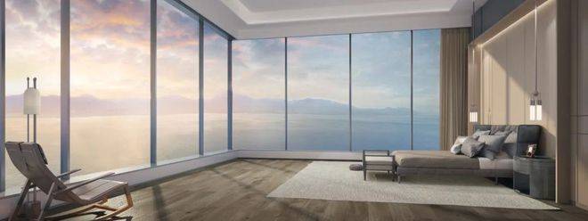 内部配套:配备高端私密会所、约 766 平方米的深圳首个悬空无边际海景泳池、首层城市花园、健身房、儿童游乐区以及 1800 平方米的海洋博物馆等设施。