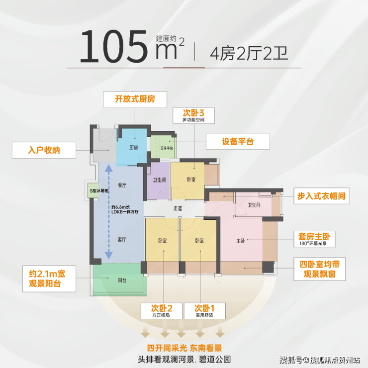 朝向景观亮点: