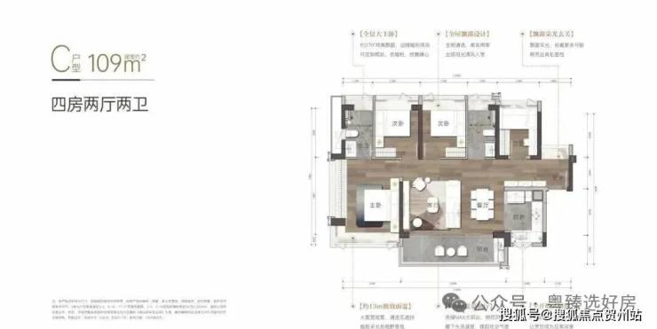 【产品面积】建面约108㎡/109㎡/138㎡~143m²海幕纯四房