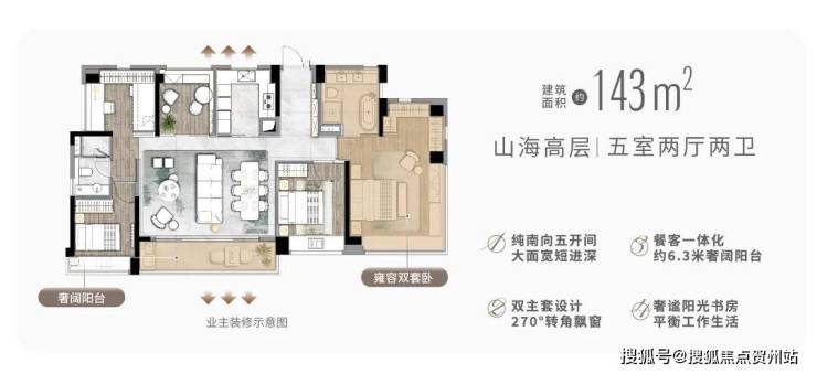 创新性实现居住空间南向布局,从两次卧,到客厅、阳台,再到主卧,通通朝南。
