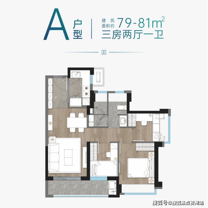 建面约79㎡三房两厅一卫